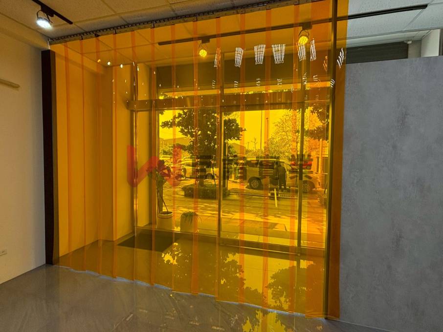 本案例位於新竹縣竹北市,為半導體封裝後段相關材料商辦公室入口區域。 現場裝設 Achilles防蟲防焰防靜電型PVC條狀門簾, 作為室內外空間之間的柔性隔離。 該門簾材質具備 抗UV、防焰、防靜電 等多重機能, 不僅可降低昆蟲進入室內的機會,也能減少靜電累積對電子材料環境的影響。 同時透明橘色的材質在光線穿透下呈現溫暖的視覺效果, 在維持機能性的同時,也為入口空間帶來更具設計感的視覺層次。 半導體產業辦公室入口、電子材料相關企業、科技產業辦公空間等。新竹縣竹北市|半導體材料商辦公室入口條狀門簾設置